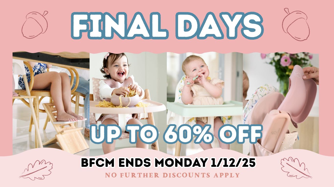 It all started with some dangling feet! Now, as a mother of three (including twins), I understand the challenges of feeding time and have truly found my passion into designing practical, safe, and stylish feeding products for babies.