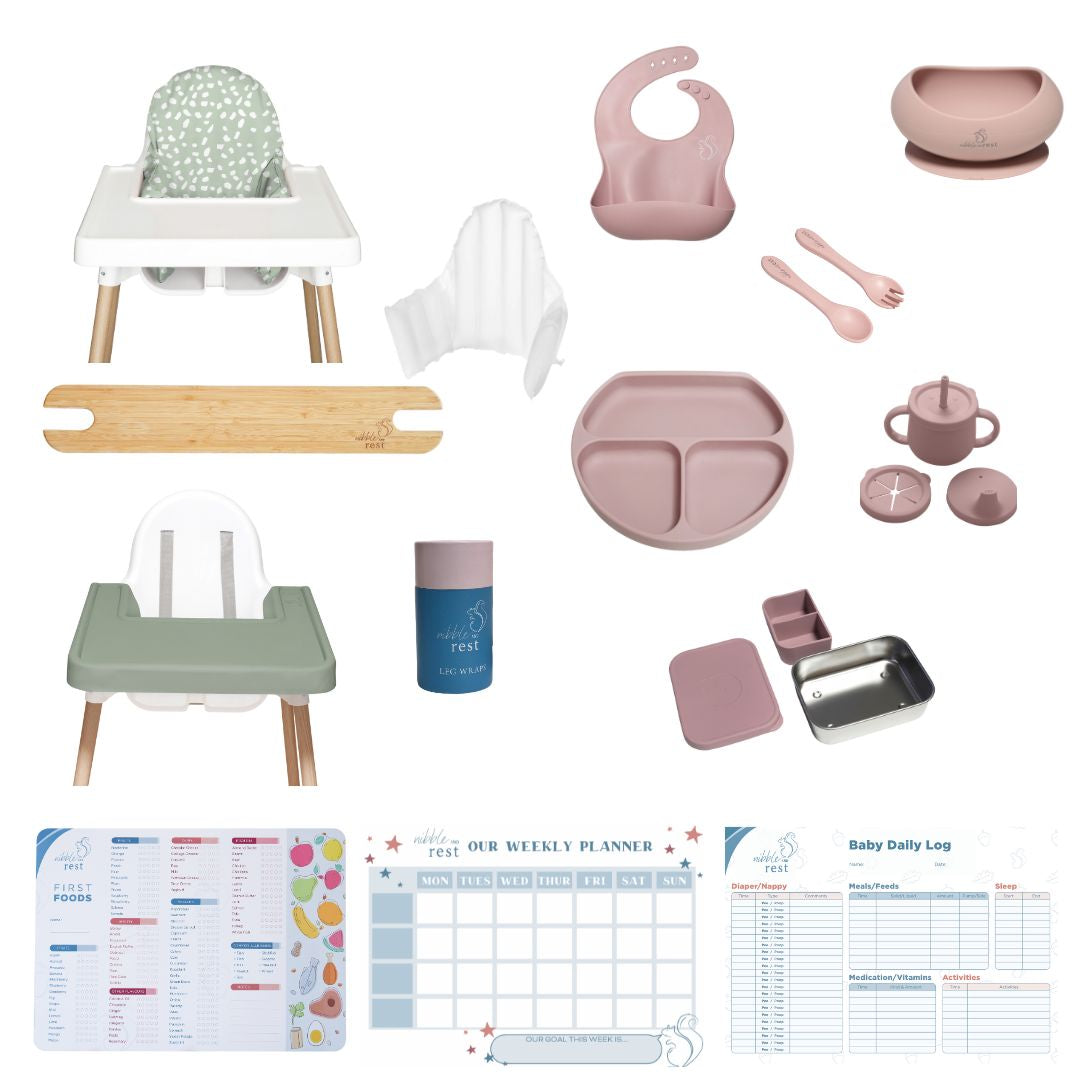 Ready to start solids with confidence? This Ultimate Kmart Prandium highchair makeover + starting solids bundle gives you everything you need for safe posture, easier clean-up, and stress-free mealtimes—plus our bestselling feeding essentials and fridge magnets to keep you organised.